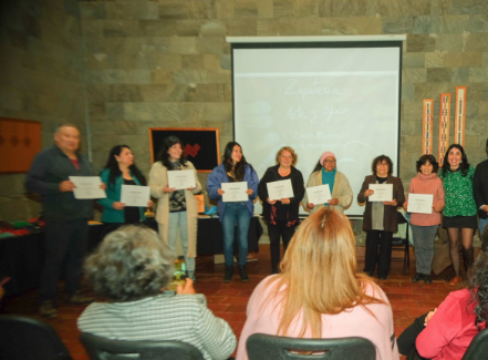 Asimismo se certificó a los 25 participantes de los talleres realizados en el Museo de Sitio Castillo de Niebla y en la Sede de la Agrupación Newen Domo en Los Pellines, quiénes además expusieron los calzados resultantes de esta experiencia de formación.